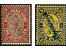 Unissued 2 k. black as single and to the left separated by gutter a horizontal pair 15 k. black, printed on reverse of cinema cards, without gum, extremely rare and most attractive, tiny wrinkles in o...