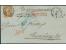 1863/65, Ganzsachenausschnitt Wappen œ Neugroschen orange, 2 StĂŒck, beide breitrandig viereckig geschnitten, davon eine mit Papierbruch aufgeklebt, in wertstufengleicher Mischfrankatur mit 2 waagerech...