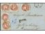 1 Neugroschen rosa, senkrechtes Paar und 3 Einzelwerte mit Doppelkreisstempel "CHEMNITZ 1 X 63" auf BriefhĂŒlle nach NykjĂžbing in JĂŒtland, DĂ€nemark mit rĂŒckseitigen Durchgangsstempeln von Hamburg und A...