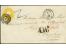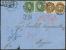 Johann 3 Neugroschen auf gelb, 3 Einzelwerte, davon einer voll- bis ĂŒberrandig, die anderen teils leicht berĂŒhrt, mit Nummernstempel "2" sowie ein Wert mit ĂŒbergehendem Weiterfrankovermerk, auf komple...