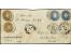 Wappen 5 Neugroschen lila, 2 StĂŒck zusammen mit 2 Neugroschen blau, als Streifen geklebt mit Rahmenstempel "LEIPZIG III/9 III 66" auf Briefkuvert der 2. Gewichtsstufe nach Barcelona mit Transit- und A...
