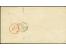 1870, unpaid folded letter and cover front from "RIO-DE-JANEIRO 6 JAN 70" resp. "PERNAMBUCO 13 JAN 70", both endorsed "p. Estremadure" with blue senders cachet at left to Genoa, upon arrival charged "...