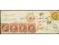 1852, William III 1 silbergroschen brownish-red (1853) in vertical strip of 3 with nice fresh colour and ample to large margins, tied by circle of 9 bars to small entire letter with adjacent red "LUXE...