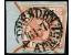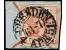 3 Pfennige rot, Platte IV, Type 13, tiefe kräftige Farbe und allseits breit- bis überrandig, oben und rechts mit Schnittlinien, daran sächsisches Liniensystem erkennbar, mit kräftig aufgesetztem Doppe...