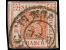 TUNESIEN: 1862, 9 Kreuzer ockerbraun im waagerechten 3er-Streifen, voll- bis meist breitrandig zusammen mit unten etwas angeschnittener 3 Kreuzer karminrosa, mit oMR "145" und nebengesetztem Halbkreis...