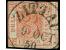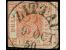 3 Pfennige ziegelrot, Platte II,Type 14, farbfrisch und voll- bis breitrandig, unten mit Schnittlinie, daran sächsisches Liniensystem erkennbar, sehr schön entwertet durch sauber aufgesetztem Doppelkr...