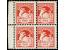 1896, 10 øre chocolate and 20 øre red, each as block of four, the latter with left sheet margin, mint never hinged, very fine