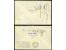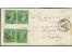 1861, Large Hermes, First Athens print 5 l. green of greenish, two pairs, small to good margins all around, one stamp with scissor cut bottom left, tied by lozenge "43" to entire letter with adjacent ...
