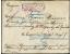 "ROPiT ATHOS" (Tschill. 181) in violet on vertical pair Russian Levante 10 k. red/green on reverse of registered envelope with frontside boxed "REGISTERED ATHOS" 1899 to Russia and returned with trans...