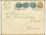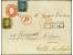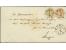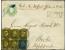 Umschlag 3 Silbergroschen gelb mit Gittergrund 1 Silbergroschen rosa und 2 Silbergroschen blau, beide voll- bis breitrandig, mit auf Wertstempel und Marken aufgesetztem Doppelkreisstempel "HAMBURG 31/...