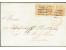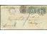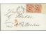 1859, 7 Schilling orange, farbfrisch und allseits breitrandig mit 2 sauber verkantet nebeinander aufgesetzten Abschlägen des Strichstempels auf Faltbrief (Marktbericht) nach London mit nebengesetztem ...