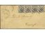 1864, ½ Schilling schwarz im waagerechten 4er-Streifen mit sauber aufgesetzten Strichstempeln und nebengesetztem Doppelkreisstempel "STEINW. 3/17 3" auf Briefkuvert mit vorderseitigem Ovalstempel "HAM...