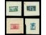 1943, Government in Exile 5gr., 10gr., 80gr. and 1,50zl., single die proofs on gummed paper, the 5gr. and 1,50zl. in unissued colors, 5gr. with production ink stain; 10gr. and 80gr. with crease and ho...