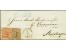 2 Schilling orangerot und ½ Schilling schwarz, mit blauem Strichstempel und sauber nebengesetztem Rahmenstempel "Ham & Horn" sowie Einkreisstempel "St.P.A.HAMBURG 13/8" auf kleiner Briefvorderseit...