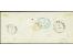 1866, Umschlag 3 Schilling ultramarin mit Zufrankatur 1864,1 Schilling rotbraun, 2 Einzelwerte, und 3 Schilling ultramarin, alle farbfrisch und gut gezähnt, mit sauber aufgesetztem blauen Doppelkreiss...
