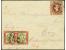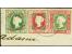 2 Schilling in Mischfrankatur mit gezähnter Ausgabe ½ Schilling hellolivgrün/karmin im waagerechten Paar und 1 S. karmin/gelblichgrün im Viererstreifen, alle farbfrisch, mit mehrfach sauber aufgesetz...