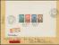 1933, Nothilfe-Block, formatverkleinert, mit sauber aufgesetzten Stempeln "BERLIN STEGLITZ 16.1.34"als nicht portogerechte Frankatur auf Luftpost-R-Brief nach Tel Aviv mit rückseitigen Teilen von Tran...