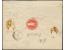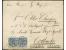 1900, Handstempel 50 Pfennig mit Aufdruck von links oben nach rechts unten (statt umgekehrt), mit Zufrankatur Steilaufdruck 3-25 Pfennig auf philatelistischem R-Brief von "TIENTSIN 11/12 00" nach Leip...