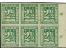 2½ Schilling blaugrün im waagerechten Sechserblock (Typen 2-3-4, 6-7-8) vom rechten Bogenrand mit Randziffern "10" und "11", ungebraucht mit Originalgummi. Leichte bräunliche Flecken und übliche Knitt...