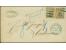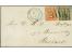 ½ Schilling schwarz und 2 Schilling orangerot, mit blauem Balkenstempel und sauber nebengesetztem mecklenburgischen Doppelkreisstempel "HAMBURG 13/11" auf kleinem Briefkuvert nach Rostock. Ein fehlend...