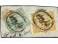 „HEZARGRAD IGNE BEKCI ISTASYONU“, all arabic single circle, clear strike resp. large part strike on Duloz 1875, 1 pia. yellow and 20 pa. green, on small piece, very fine and rare, ex Hitzler