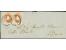 5 Soldi rot im senkrechten Paar, mit leicht aufgesetztem EKr. "CORMONS 1/2" (1861) auf Briefhülle mit Teil des Inhaltes nach Venedig. Eine seltene Verwendung im österreichischen Reichsgebiet. Signiert...