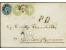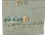 2 Soldi gelb und 3 Soldi schwarz, jeweils 2 Einzelwerte als rückseitige Reco-Frankatur auf Briefkuvert mit vorderseitig 15 Soldi blau (aus optischen Gründen Kuvert aufgeschnitten und Frankatur nach hi...